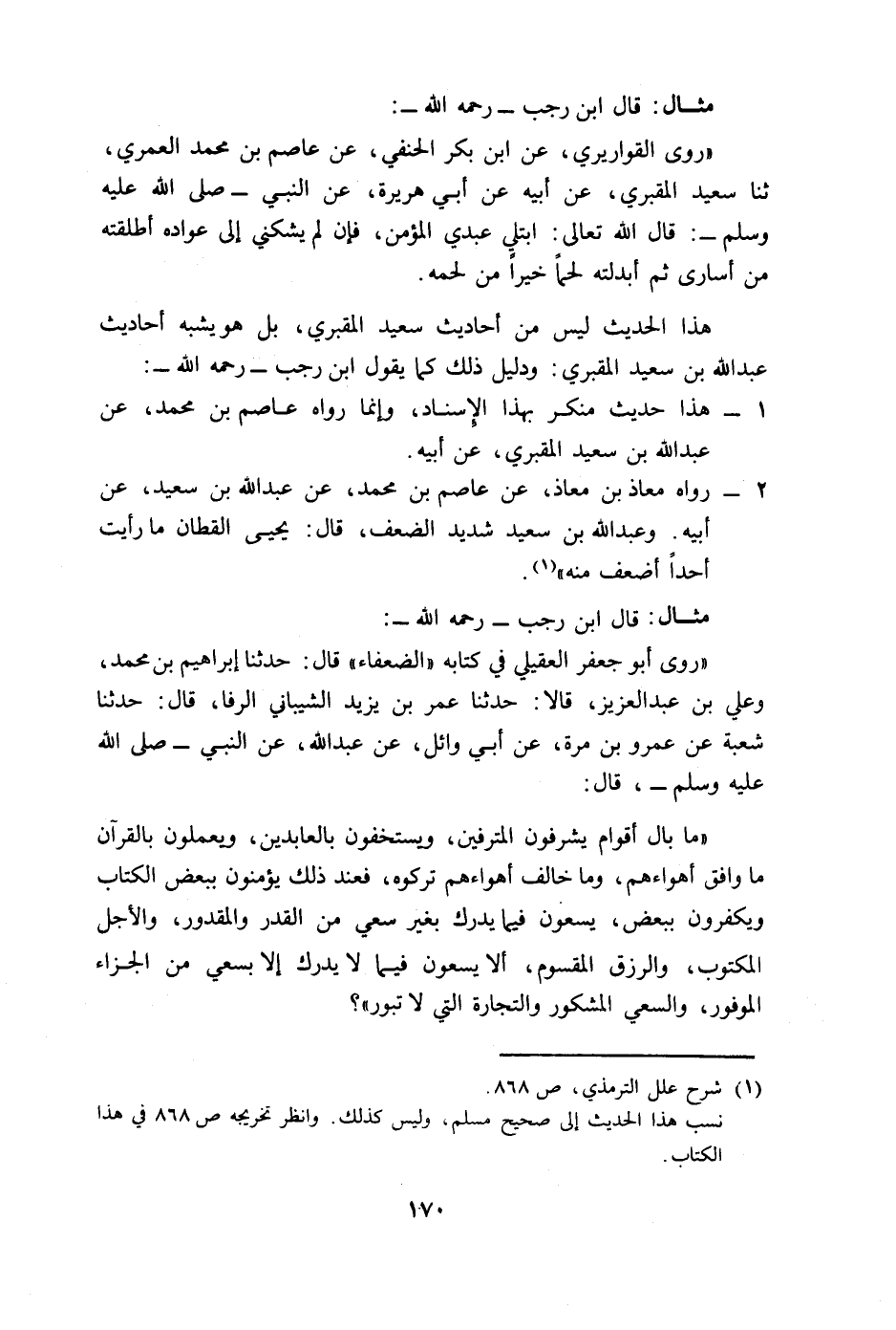 2 - رواه معاذ بن معاذ، عن عاصم بن محمد، عن عبد الله بن سعيد، عن أبيه. وعبد الله بن سعيد شديد الضعف، قال: يحيى القطان ما رأيت أحدا أضعف منه".