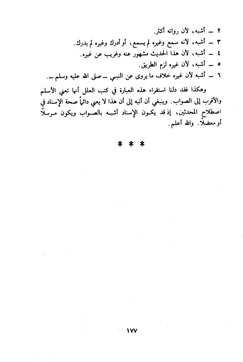 وهكذا فقد دلنا استقراء هذه العبارة في كتب العلل أنها تعني الأسلم والأقرب إلى الصواب. وينبغي أن أنبه إلى أن هذا لا يعني دائما صحة الإسناد في اصطلاح المحدثين، إذ قد يكون الإسناد أشبه بالصواب ويكون مرسلا أو معضلا والله أعلم