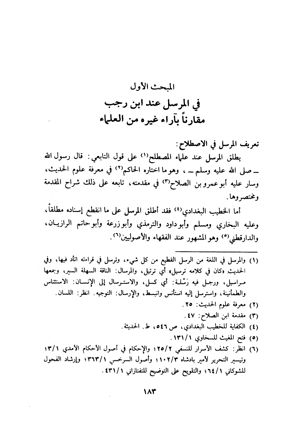 المبحث الأول في المرسل عند ابن رجب مقارنا بآراء غيره من العلماء