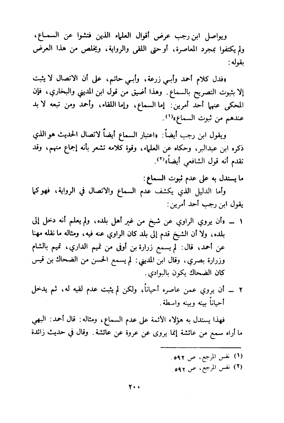 ويواصل ابن رجب عرض أقوال العلماء الذين فتشوا عن السماع، ولم يكتفوا بمجرد المعاصرة، أو حتى اللقى والرواية، ويخلص من هذا العرض بقوله: