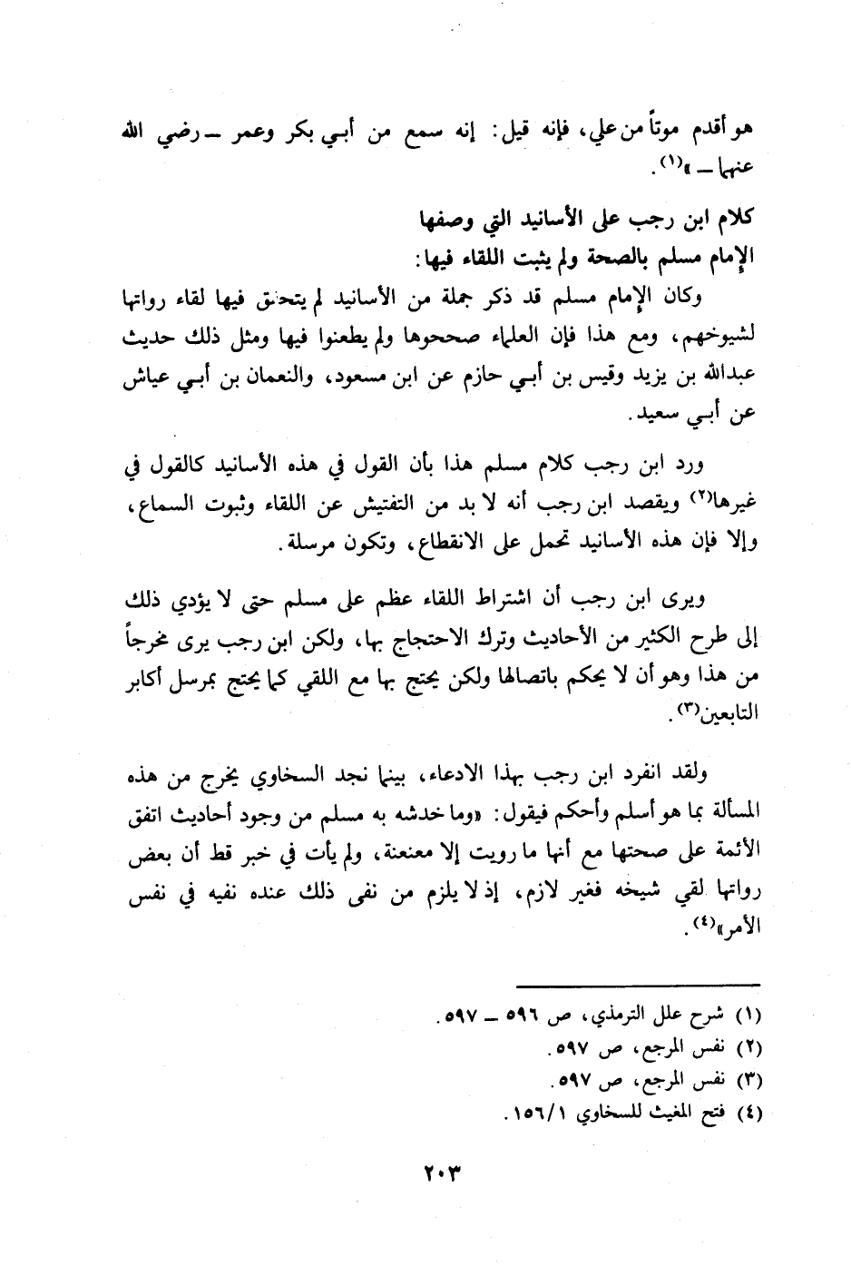 كلام ابن رجب على الأسانيد التي وصفها والإمام مسلم بالصحة ولم يثبت اللقاء فيها:
