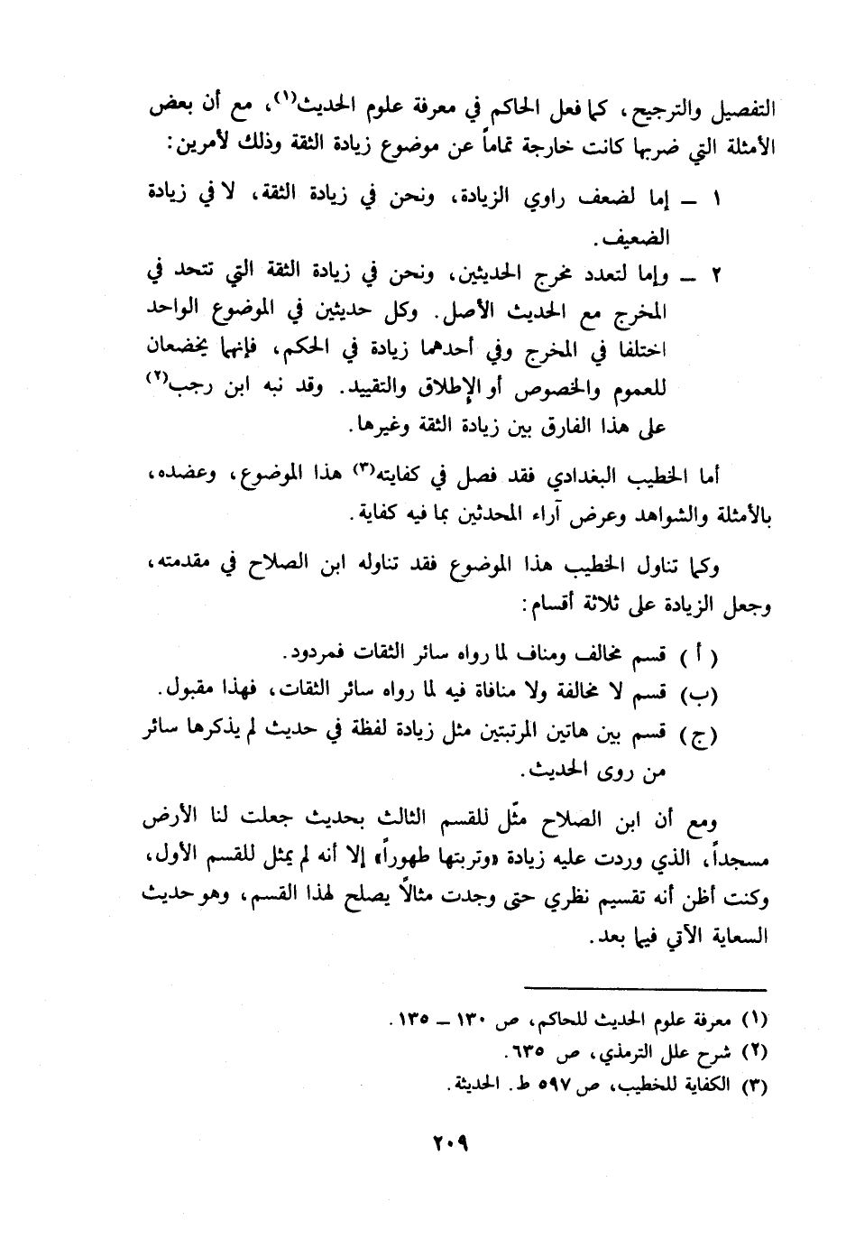 وكما تناول الخطيب هذا الموضوع فقد تناوله ابن الصلاح في مقدمته، وجعل الزيادة على ثلاثة أقسام: