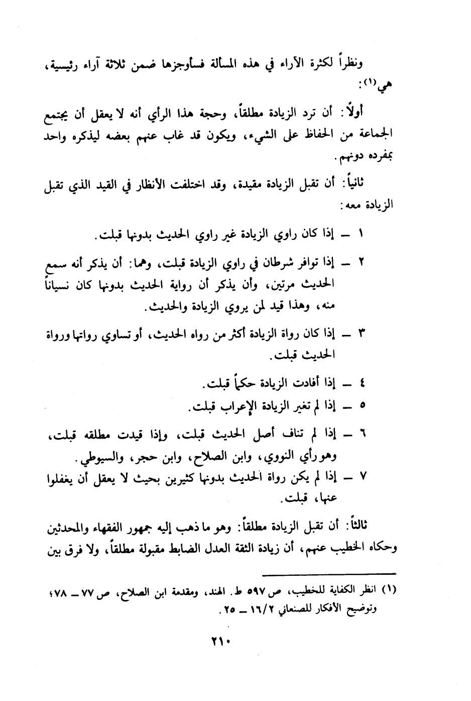 6 - إذا لم تناف أصل الحديث قبلت، وإذا قيدت مطلقه قبلت، وهو رأي النووي، وابن الصلاح، وابن حجر، والسيوطي.