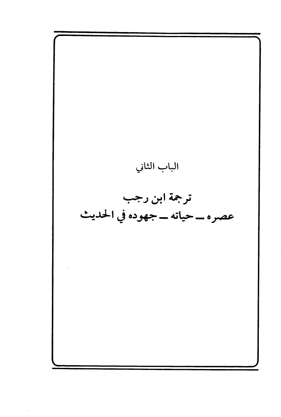 الباب الثاني: ترجمة ابن رجب عصره - حياته - جهوده في الحديث
