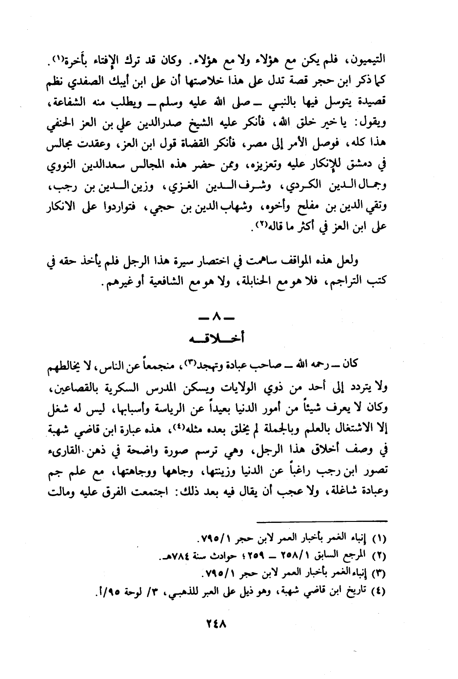 ولعل هذه المواقف ساهمت في اختصار سيرة هذا الرجل فلم يأخذ حقه في كتب التراجم، فلا هو مع الحنابلة، ولا هو مع الشافعية أو غيرهم.