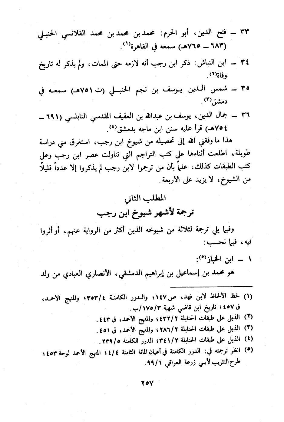 المطلب الثاني ترجمة لأشهر شيوخ ابن رجب