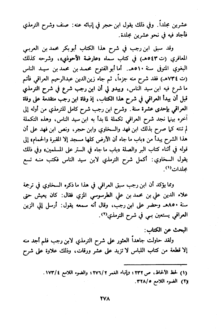 ولقد حاولت جاهدا العثور على شرح الترمذي لابن رجب فلم أجد منه إلا قطعة من كتاب اللباس لا تزيد على عشر ورقات، وذلك علاوة على شرح