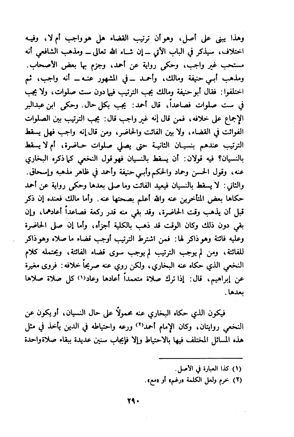 فيكون الذي حكاه البخاري عنه محمولا على حال النسيان، أو يكون عن النخعي روايتان، وكان الإمام أحمد ورعه واحتياطه في الدين يأخذ في مثل هذه المسائل المختلف فيها بالاحتياط وإلا فإيجاب سنين عديدة ببقاء صلاة واحدة