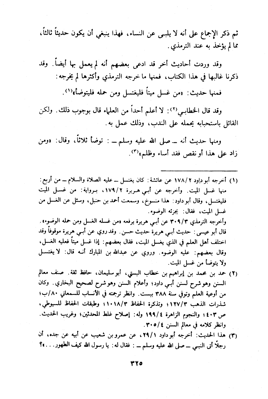 ومنها حديث أنه A: توضأ ثلاثا، وقال: "ومن زاد على هذا أو نقص فقد أساء وظلم".