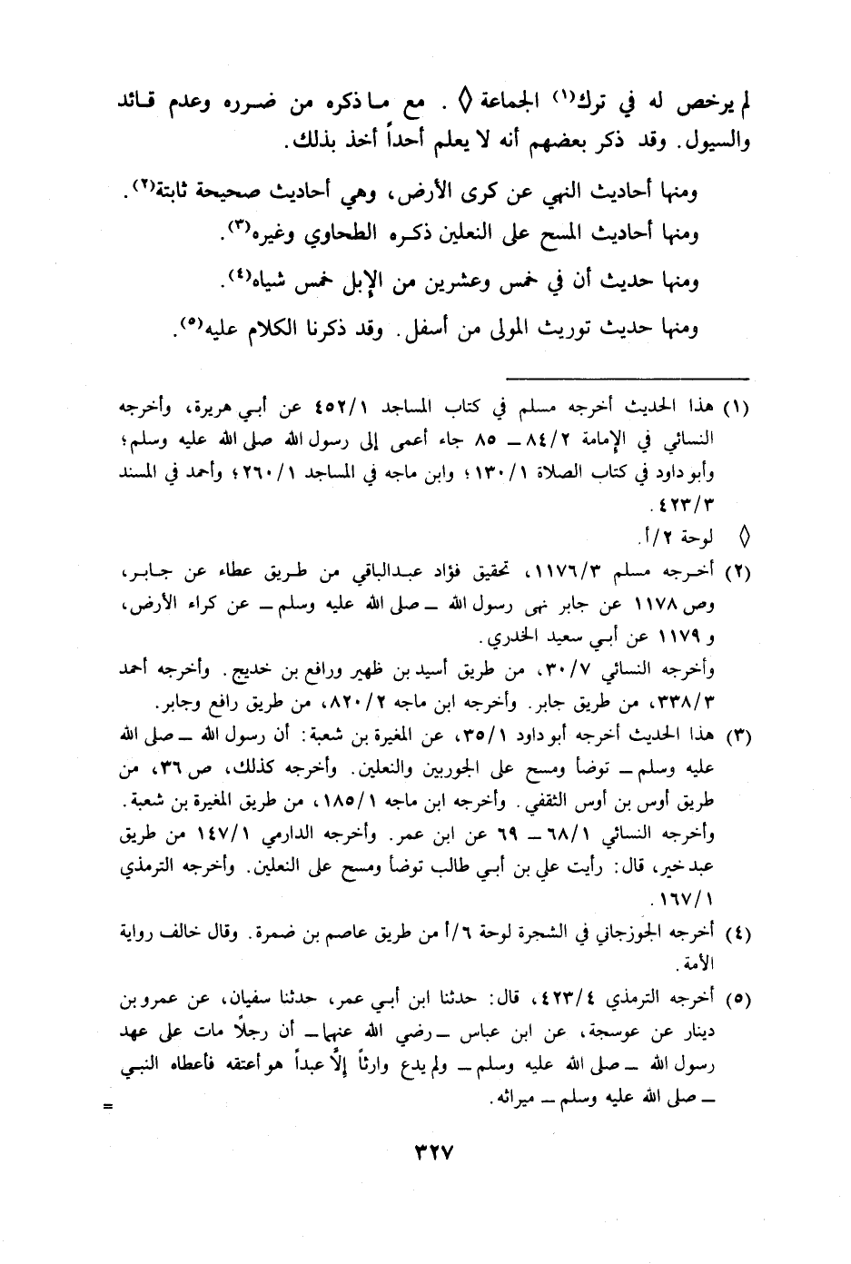 ومنها أحاديث المسح على النعلين ذكره الطحاوي وغيره.