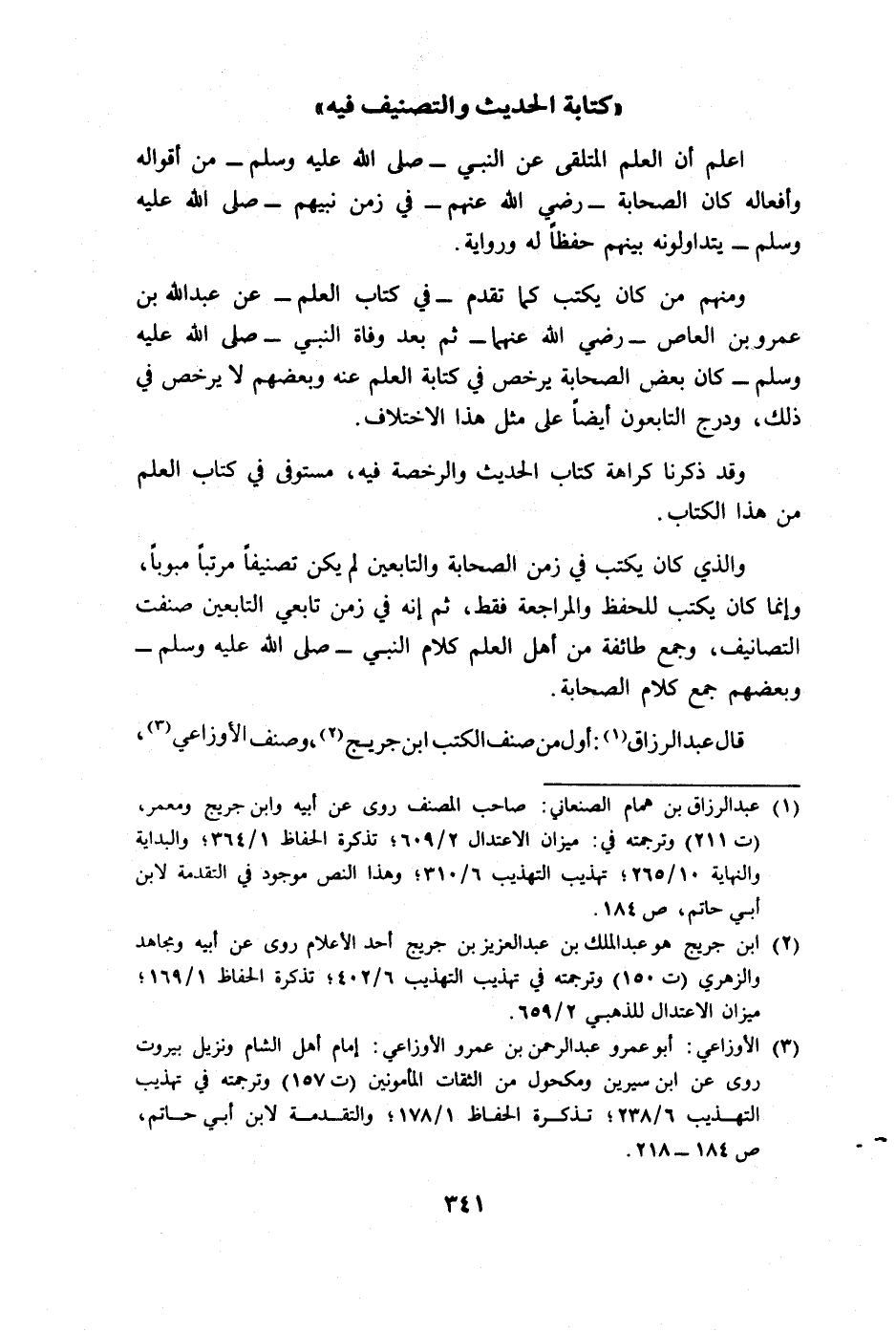 قال عبد الرزاق: أول من صنف الكتب ابن جريح، وصنف الأوزاعي،
