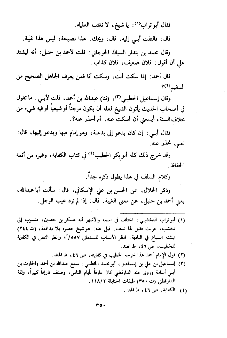 فقال أبو تراب: يا شيخ، لا تغتب العلماء.