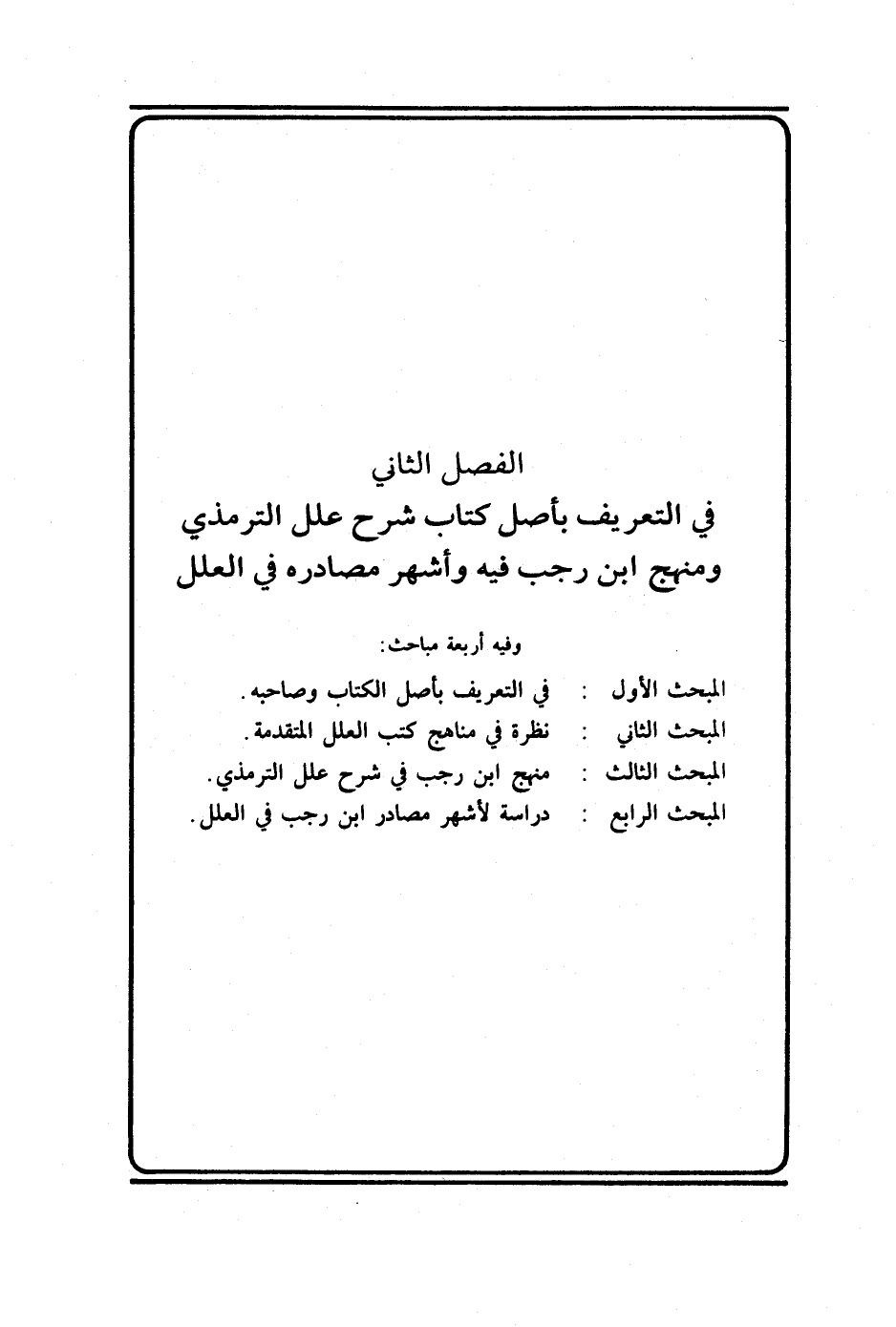 الفصل الثاني في التعريف بأصل كتاب شرح علل الترمذي ومنهج ابن رجب فيه وأشهر مصادره في العلل