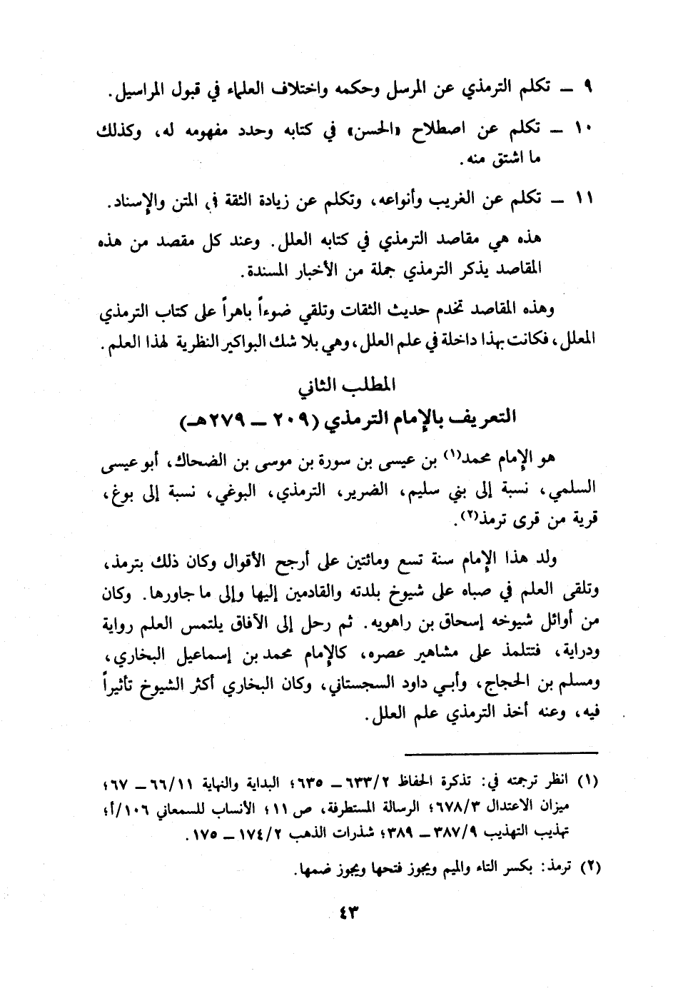 المطلب الثاني التعريف بالإمام الترمذي (209 - 279هـ)