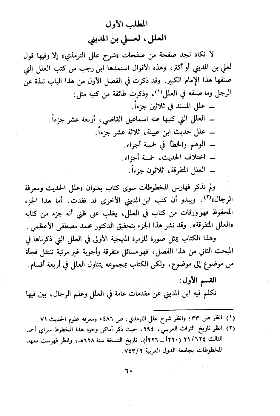 تكلم فيه ابن المديني عن مقدمات عامة في العلل وعلم الرجال، بين فيها
