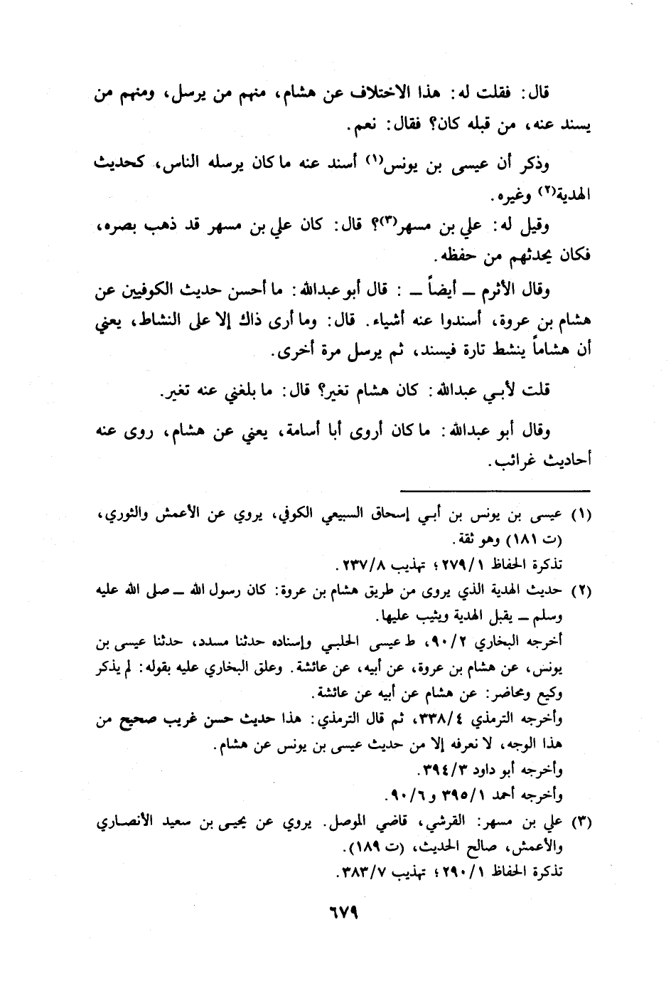 وذكر العقيلي بإسناده عن ابن لهيعة، قال: كان أبو الأسود (يعجب من حديث هشام بن عروة، عن أبيه، وربما مكث سنة لا يكلمه. وعن ابن) لهيعة عن أبي الأسود، قال: لم يكن عروة يرفع حديث أم زرع إلى النبي ـ A ـ إنما كان يقطع به الطريق.