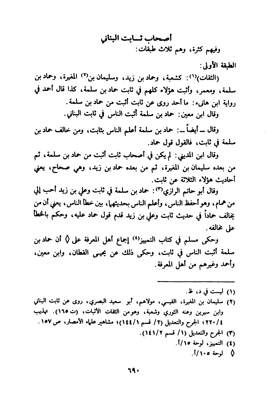وقال في عمارة بن زاذان: يروي عن ثابت أحاديث مناكير، ثم قال: هؤلاء الشيوخ رووا عن ثابت، وكان ثابت جل حديثه عن أنس فحملوا حديثه عن أنس.