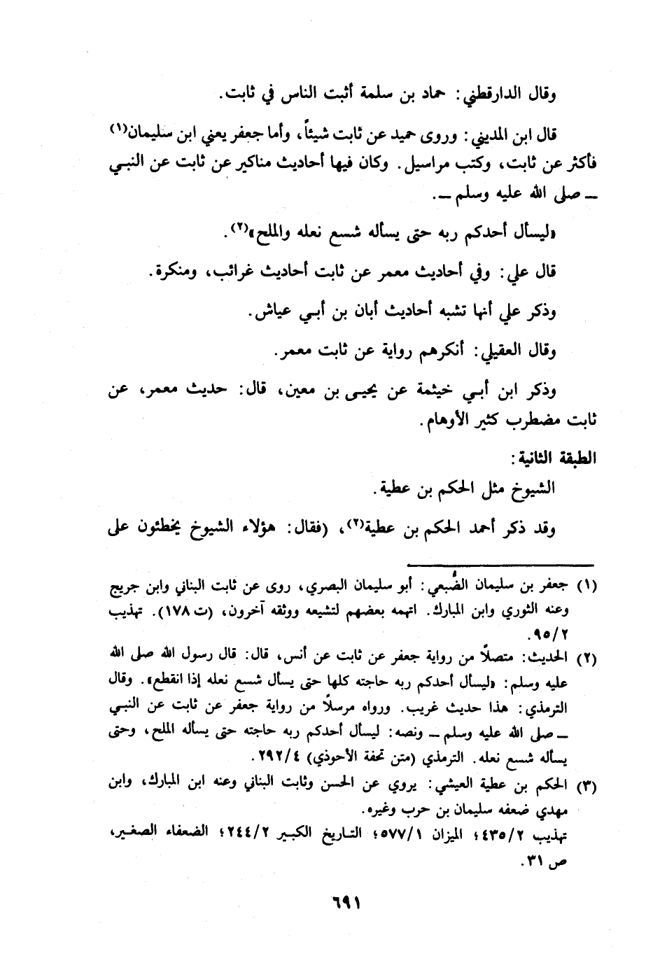 كيوسف بن عطية الصفار، قال ابن هانىء: قال أحمد: كان (حماد) ثبتاً في حديث ثابت البناني وبعده سليمان بن المغيرة، وكان ثابت يحيلون عليه في حديث أنس، وكل شيء لثابت روى عنه، يقولون: ثابت عن أنس.