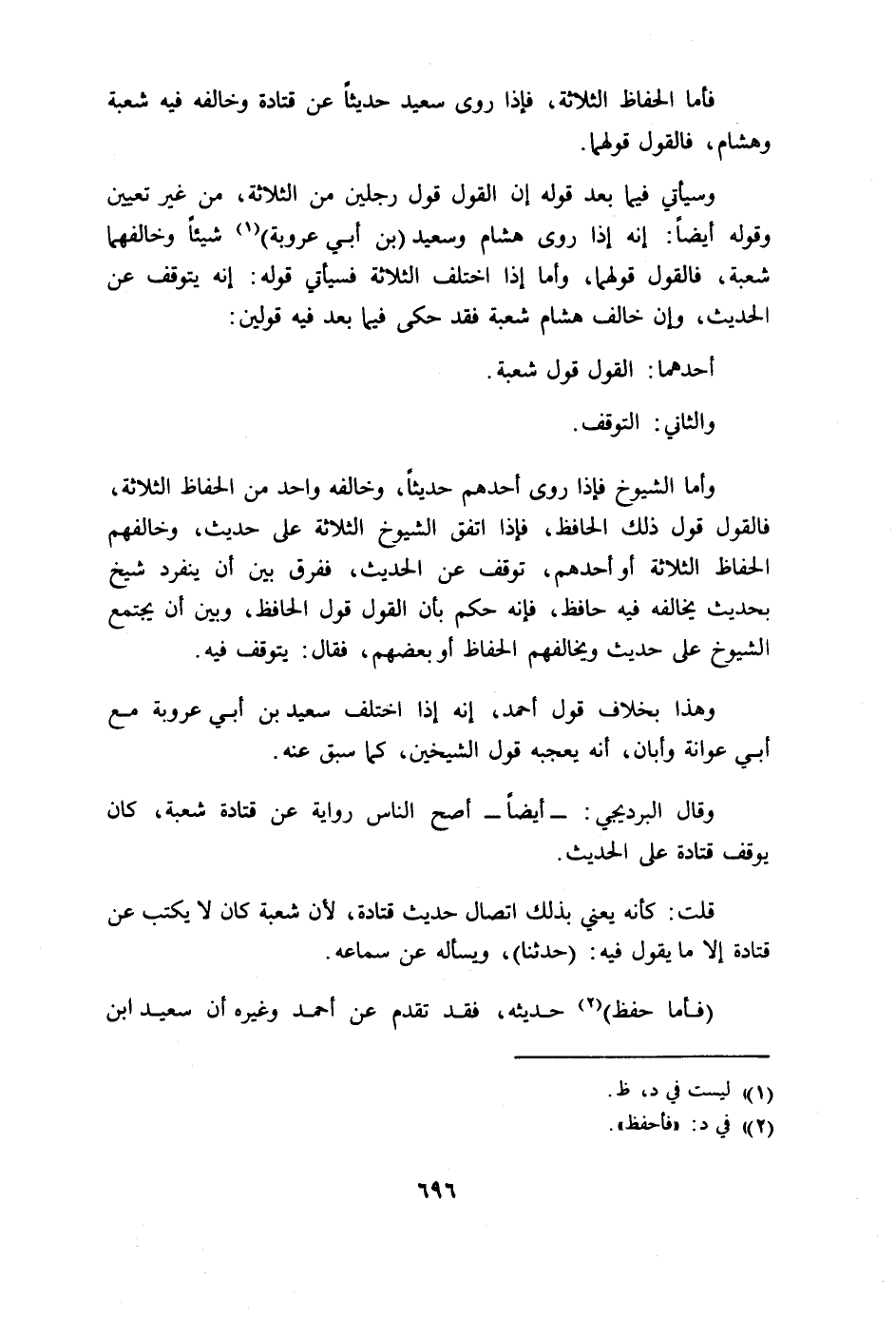 قال أحمد: وقال عفان: وذكر حديثاً، فقال: أصاب همام وأخطأ هشام وسعيد.