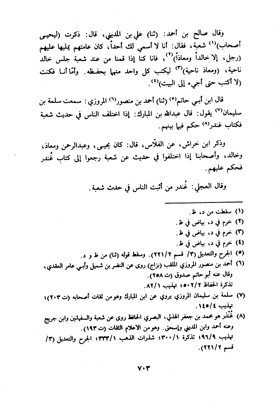 فشبابة قال: ثقة. قلت: فمعاذ أثبت في شعبة أو غندر؟ قال: ثقة، وثقة.