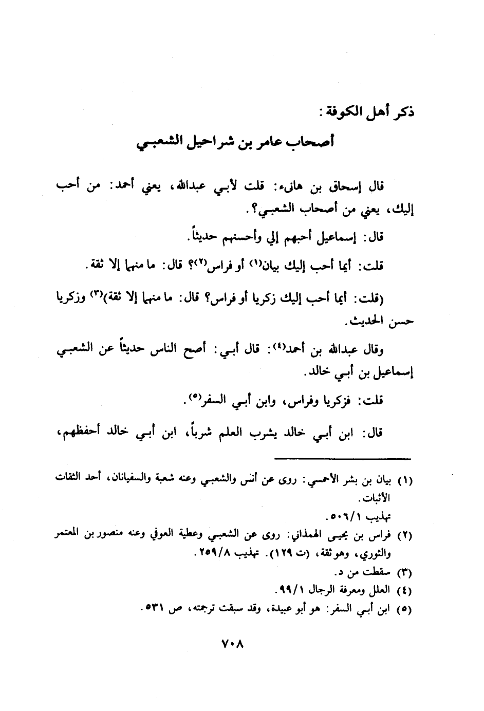 قال الميموني: قلت لأبي عبد الله: من أكبر في أبي إسحاق؟ قال: ما (أجد) في نفسي أكبر من شعبة (فيه) ، ثم الثوري، قال: وشعبة أقدم سماعاً من سفيان، قلت: وكان أبو إسحاق قد تأخر، قال: إي والله هؤلاء الصغار زهير (وإسرائيل يزيدون) في الإسناد وفي الكلام.