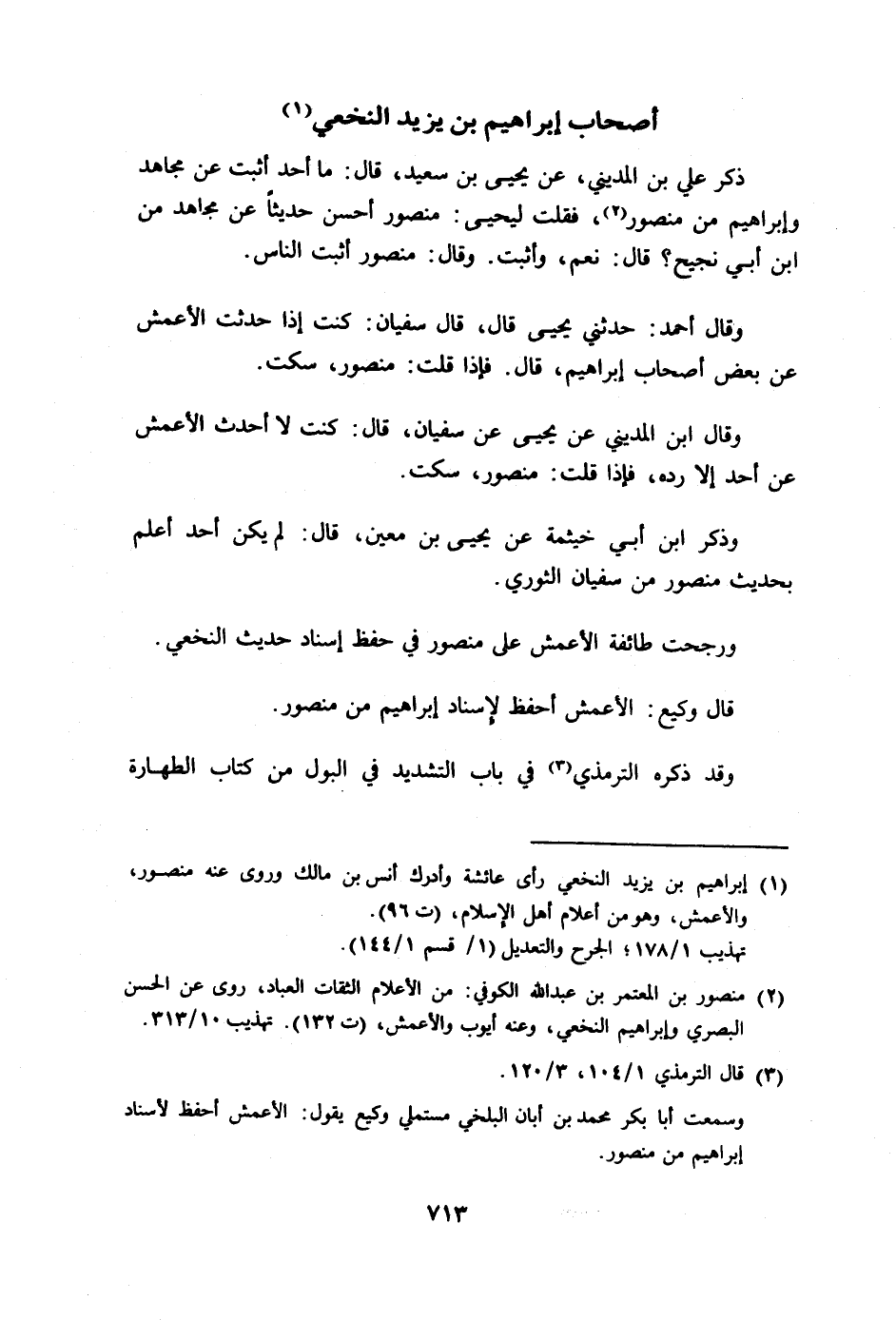 قال ابن المديني: قلت ليحيى بن سعيد: أي أصحاب (إبراهيم أحب إليك؟ قال) : الحكم ومنصور. قلت: أيهما (أحب إليك؟ قال: ما أقربهما.