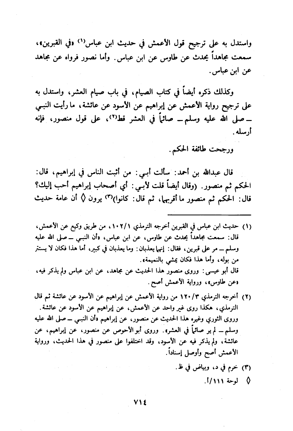 قال: (ثنا) أبي، (ثنا) أبو بكر الأعين، قال: سمعت أحمد بن حنبل، وقلت له: من أحب الناس إليك في حديث الأعمش؟ قال: سفيان، قلت: شعبة؟. قال: سفيان.
