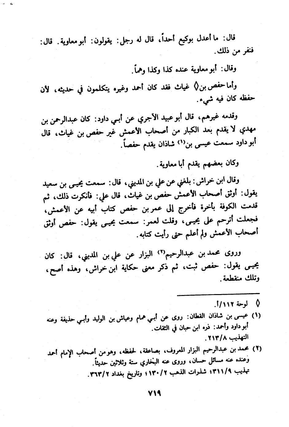 قال عثمان بن سعيد: قلت ليحيى بن معين: جرير أحب إليك في منصور أم شريك؟ قال: جرير أعلم به.
