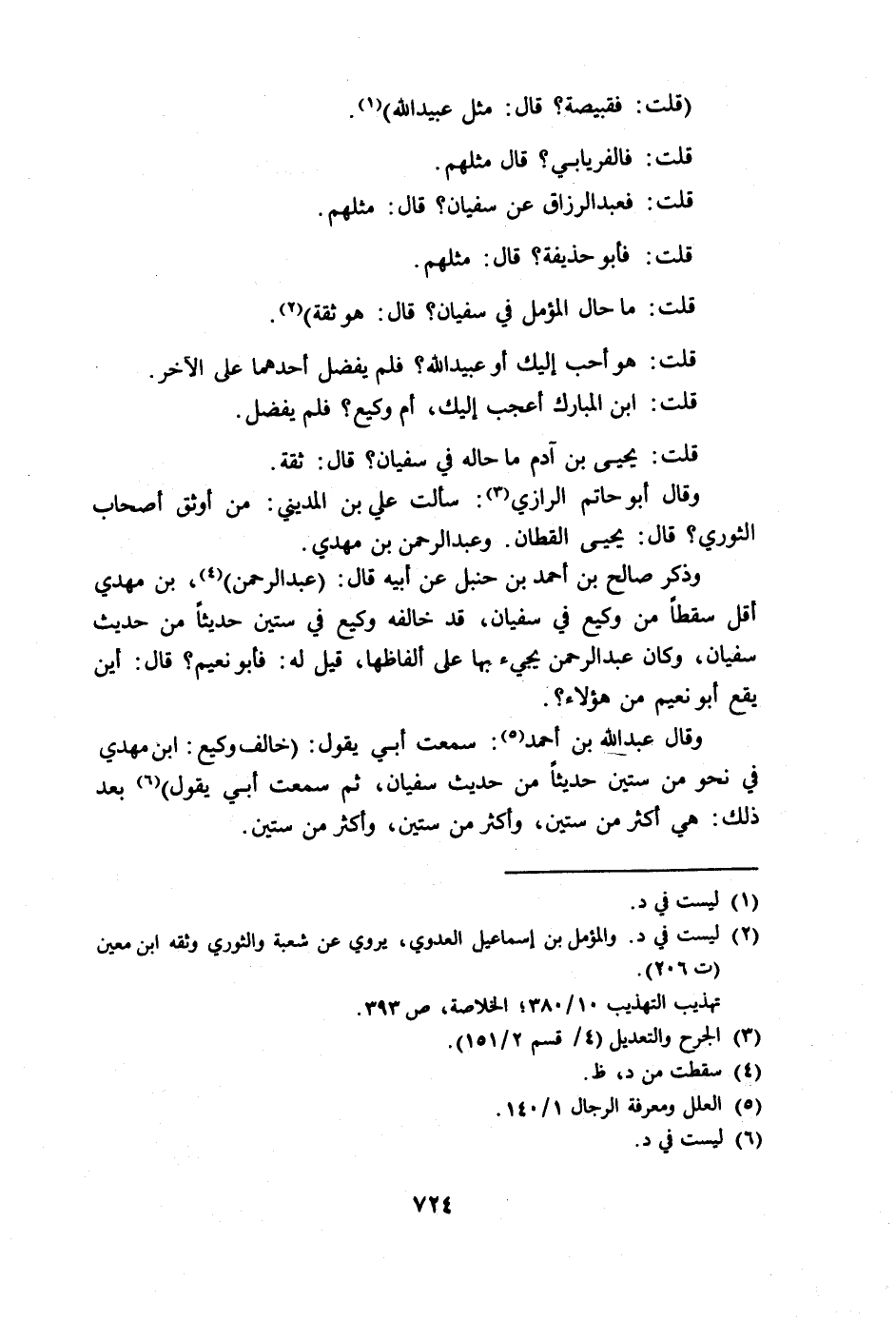 وضعف ابن معين قبيصة في سفيان. وقال في محمد بن عبيد الطنافسي: هو كثير الخطأ عن سفيان الثوري.