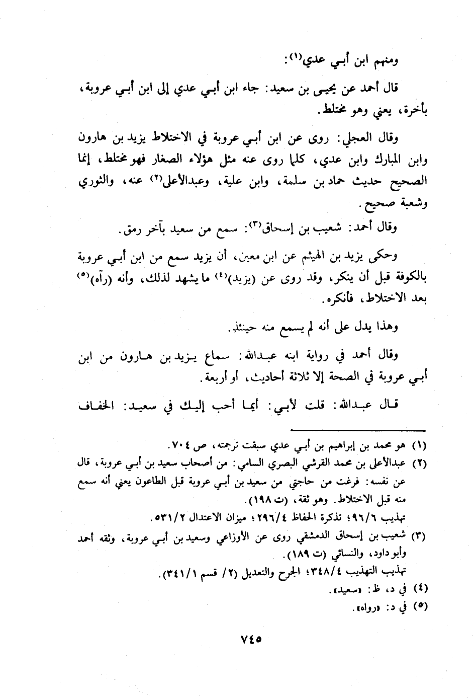 وقال جعفر الطيالسي: سمعت يحيى بن معين يقول: قلت لعبد الوهاب: سمعت من سعيد في الاختلاط؟ قال: سمعت منه في الاختلاط وغير الاختلاط، فليس أميز بين هذا وهذا.