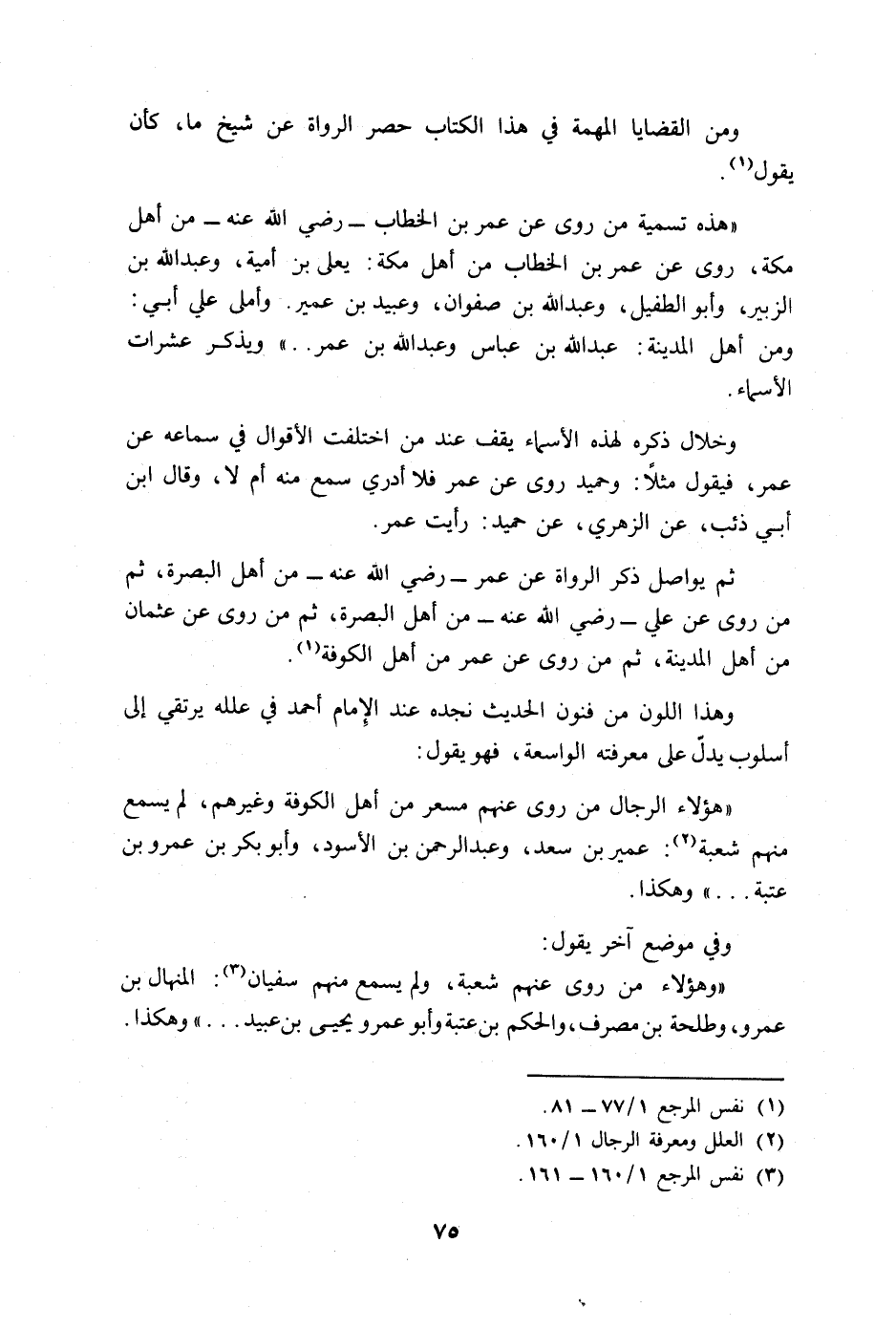 وهذا اللون من فنون الحديث نجده عند الإمام أحمد في علله يرتقي إلى أسلوب يدل على معرفته الواسعة، فهو يقول: