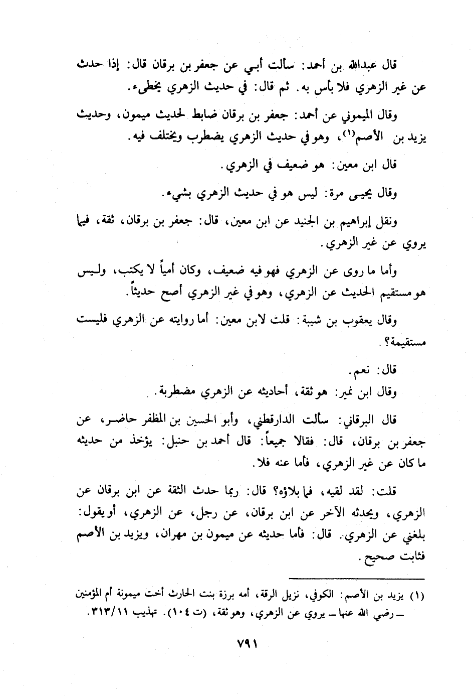 وقال مسلم في كتاب التمييز: جعفر بن برقان، أعلم الناس بميمون أبن مهران، ويزيد بن الأصم.