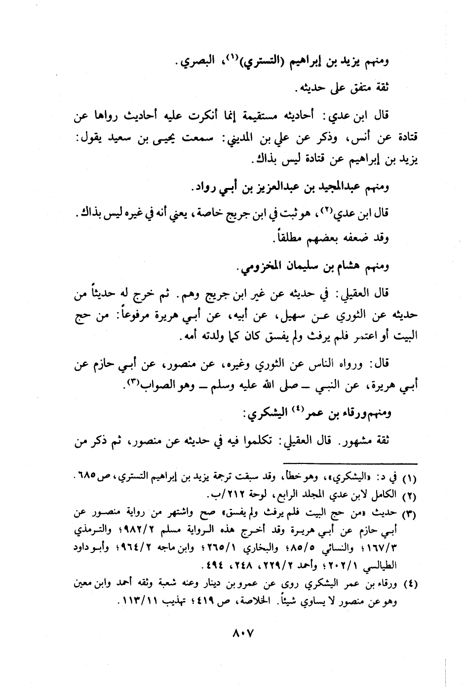 ومنهم جماعة من أصحاب عبيد الله بن عمر العمري، ضعف حديثهم عنه ـ خاصة ـ.
