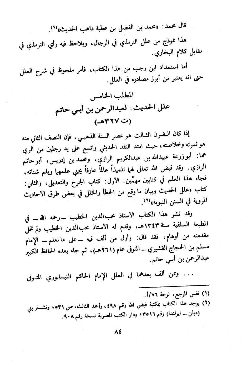 المطلب الخامس علل الحديث: لعبد الرحمن بن أبي حاتم (ت 327هـ)