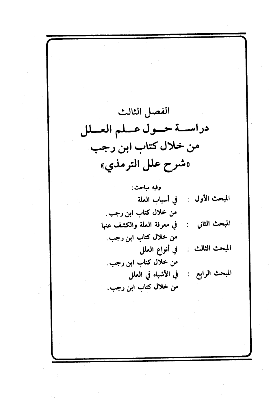 الفصل الثالث دراسة حول علم العلل من خلال كتاب ابن رجب "شرح علل الترمذي"