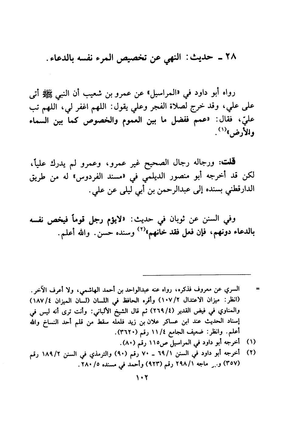 28 - حديث: النهي عن تخصيص المرء نفسه بالدعاء.