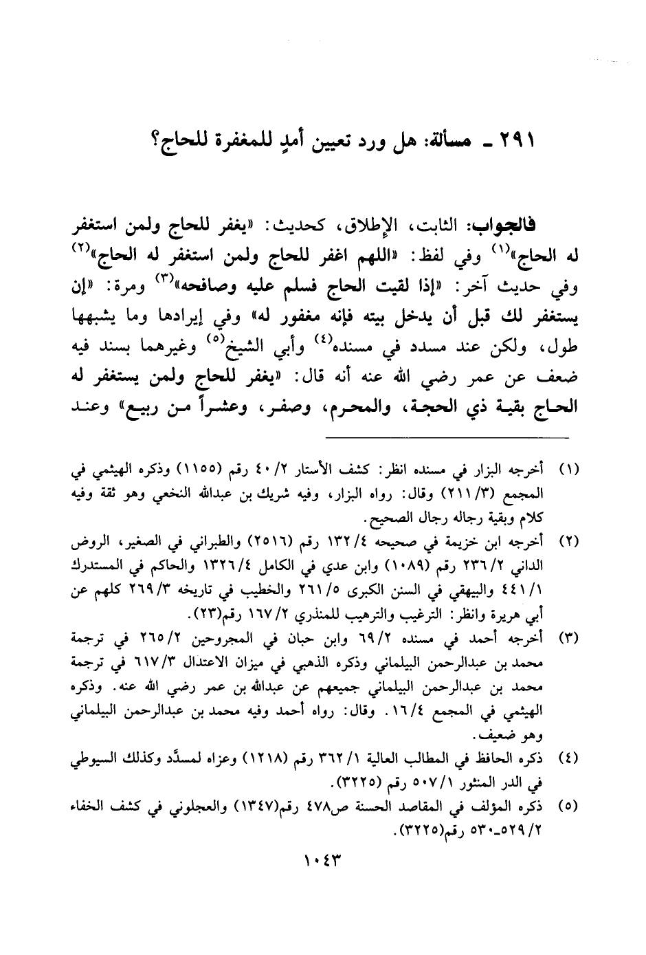 291 - مسألة: هل ورد تعيين أمدٍ للمغفرة للحاج؟