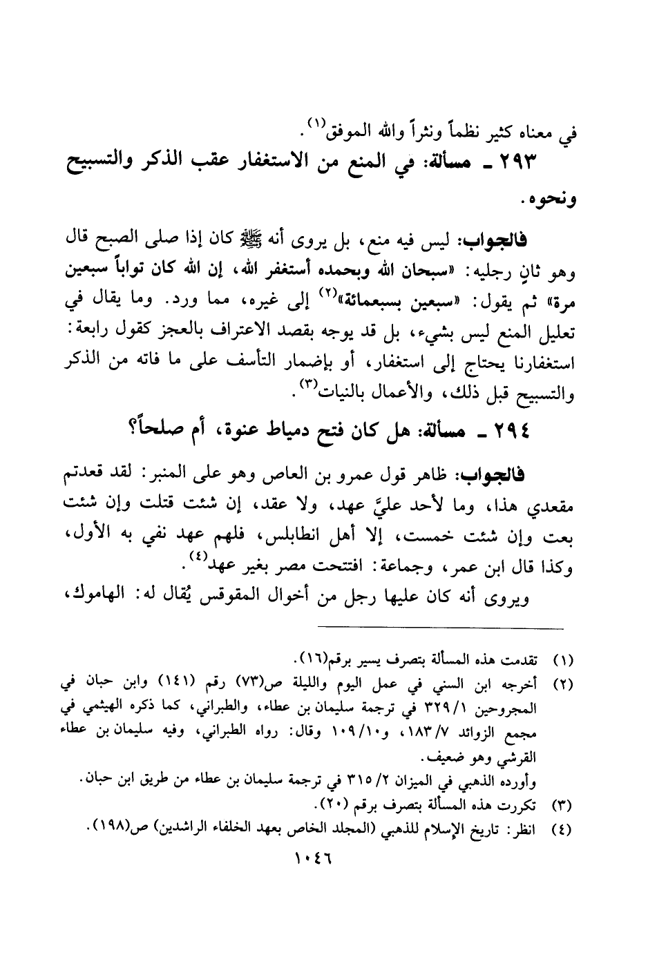293 - مسألة: في المنع من الاستغفار عقب الذكر والتسبيح ونحوه.