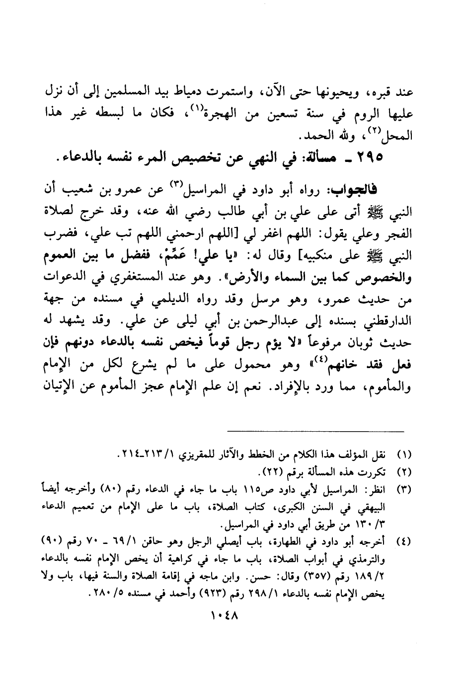295 - مسألة: في النهي عن تخصيص المرء نفسه بالدعاء.