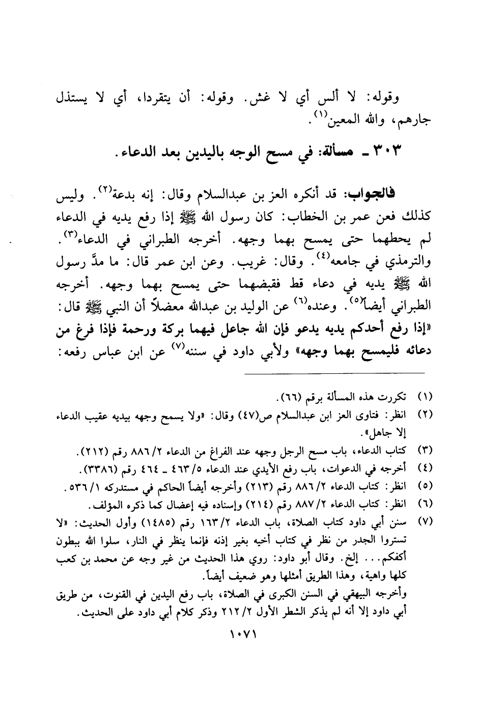 303 - مسألة: في مسح الوجه باليدين بعد الدعاء.