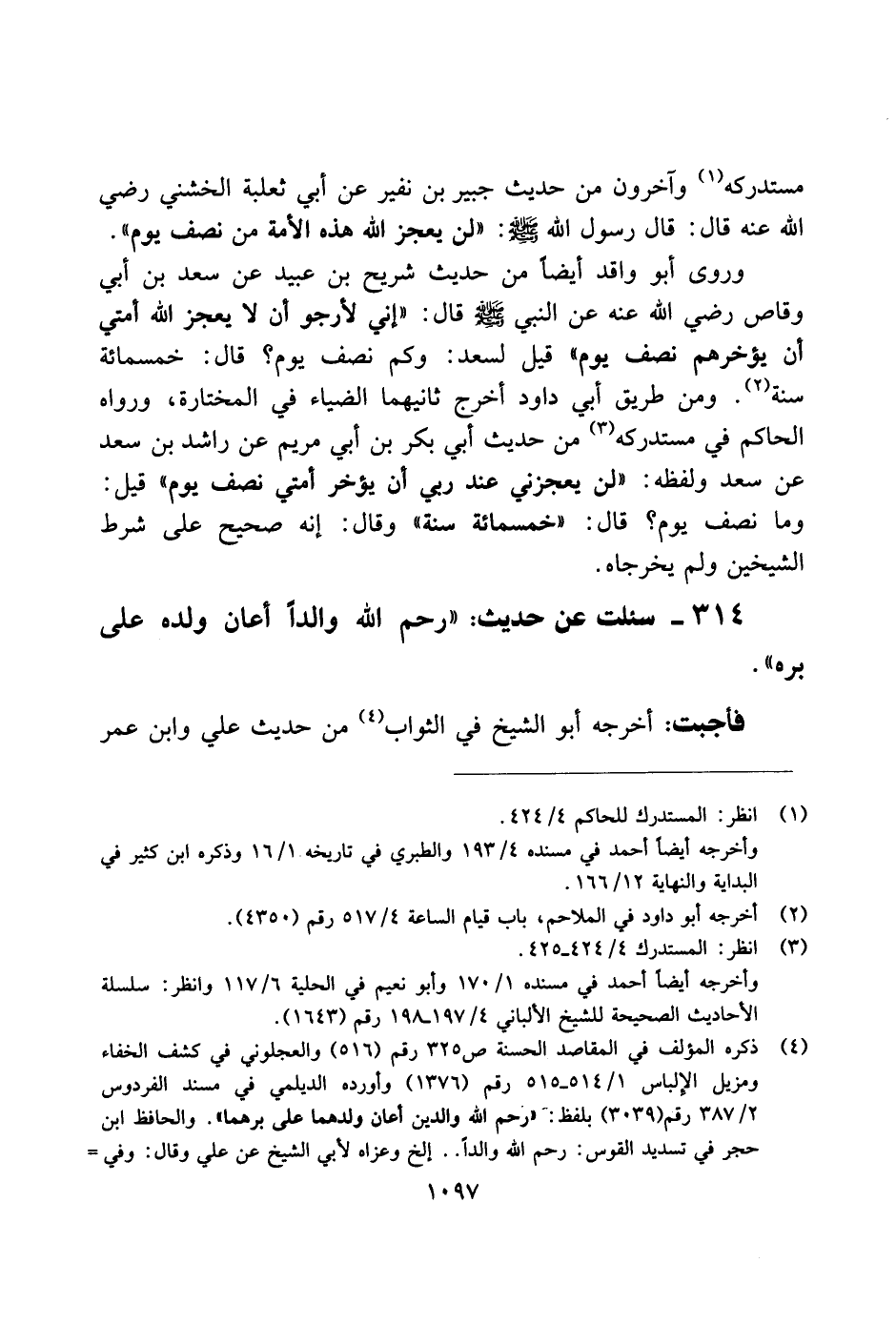 314 - سئلت عن حديث: "رحم الله والدًا أعان ولده على بره".