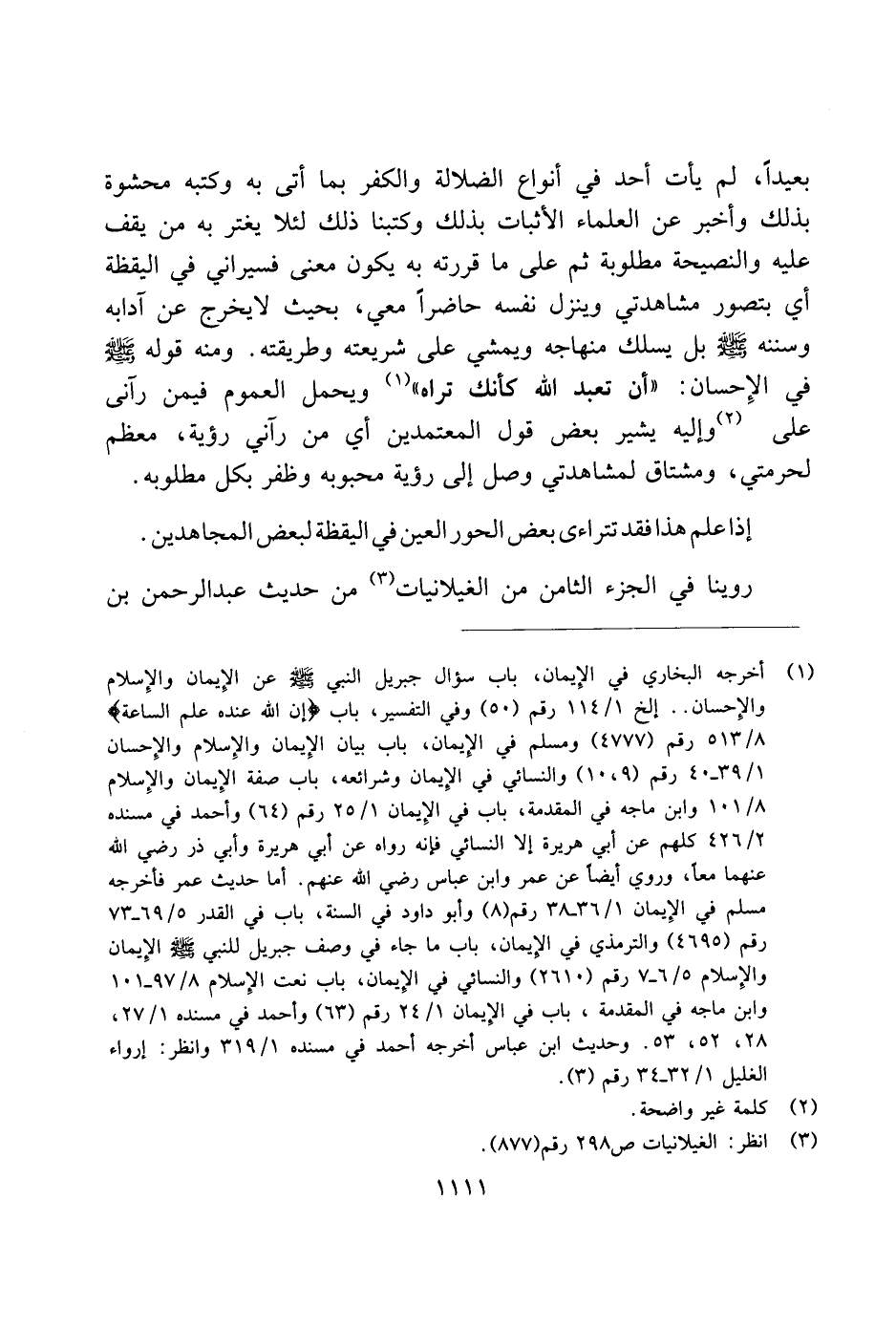 بعيدًا، لم يأت أحد في أنواع الضلالة والكفر بما أتى به وكتبه محشوة بذلك وأخبر عن العلماء الأثبات بذلك وكتبنا ذلك لئلا يغتر به من يقف عليه والنصيحة مطلوبة ثم على ما قررته به يكون معنى فسيراني في اليقظة أي يتصور مشاهدتي وينزل نفسه حاضرًا معي، بحيث لا يخرج عن آدابه وسننه صلى الله عليه وسلم بل يسلك منهاجه ويمشي على شريعته وطريقته. ومنه قوله صلى الله عليه وسلم في الإحسان: "أن تعبد الله كأنك تراه" ويحمل العموم فيمن رآني على وإليه يشير بعض قول المعتمدين أي من رآني رؤية، معظم لحرمتي، ومشتاق لمشاهدتي وصل إلى رؤية محبوبه وظفر بكل مطلوبه.