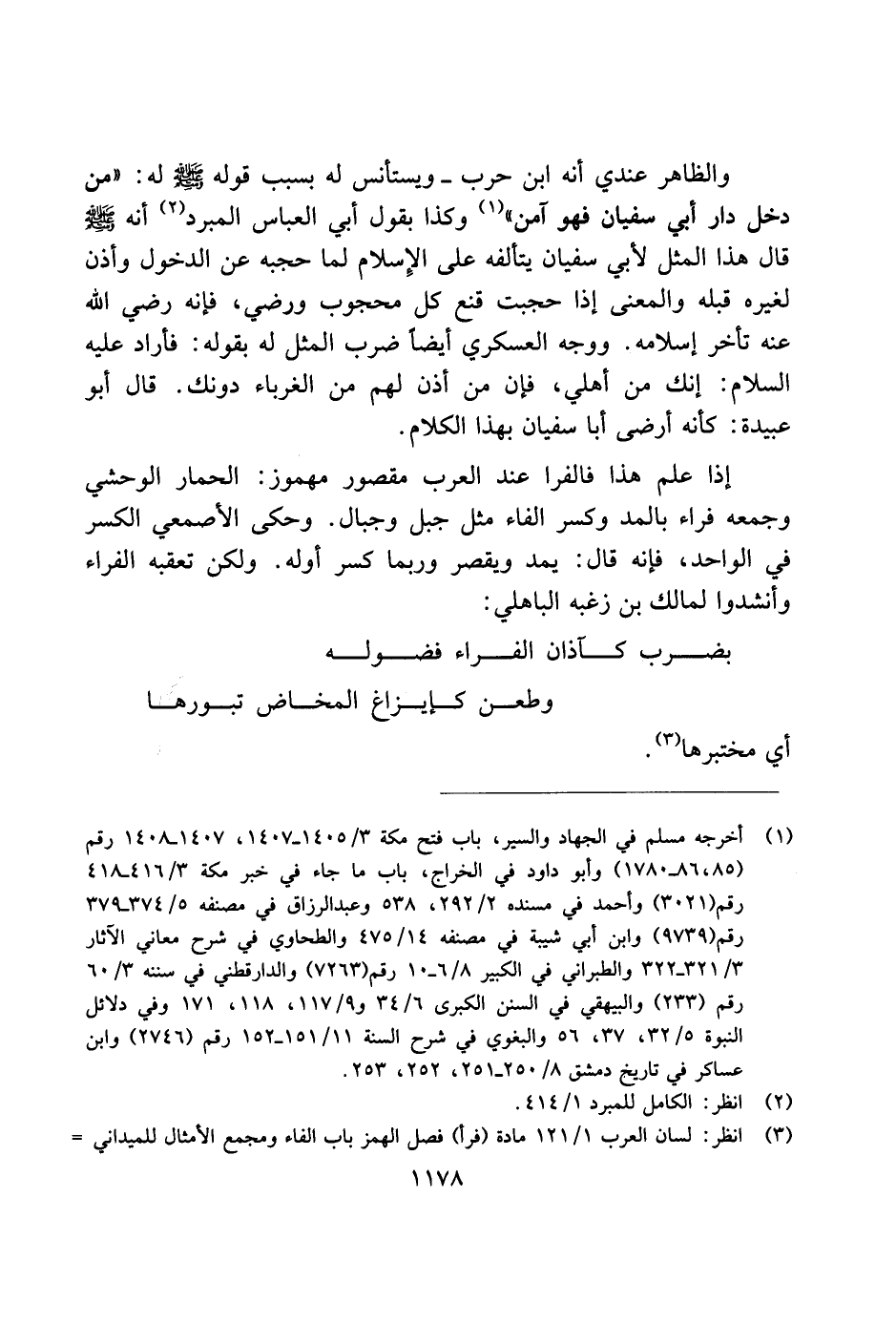 إذا علم هذا فالفرا عند العرب مقصور مهموز: الحمار الوحشي وجمعه فراء بالمد وكسر الفاء مثل جبل وجبال. وحكى الأصمعي الكسر في الواحد، فإنه قال: يمد ويقصر وربما كسر أوله. ولكن تعقبه الفراء وأنشدوا لمالك بن زغبه الباهلي: