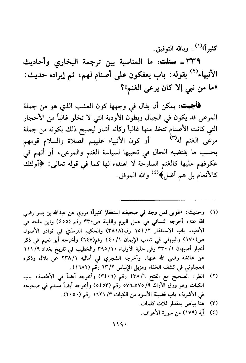 339 - سئلت: ما المناسبة بين ترجمة البخاري وأحاديث الأنبياء بقوله: باب يعفكون على أصنام لهم، ثم إيراده حديث: «ما من نبي إلا كان يرعى الغنم»؟