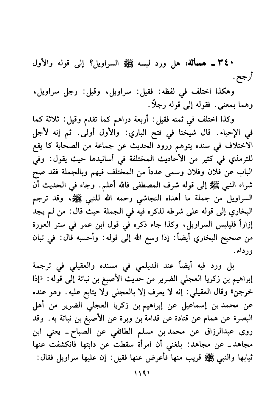 340 - مسألة: هل ورد لبسه صلى الله عليه سلم السراويل؟ إلى قوله والأول أرجح.