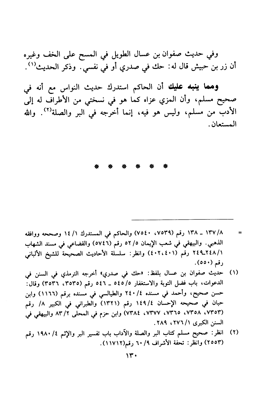 ومما ينبه عليك أن الحاكم استدرك حديث النواس مع أنه في صحيح مسلم، وأن المزي عزاه كما هو في نسختي من الأطراف له إلى الأدب من مسلم، وليس هو فيه، إنما أخرجه في البر والصلة. والله المستعان.