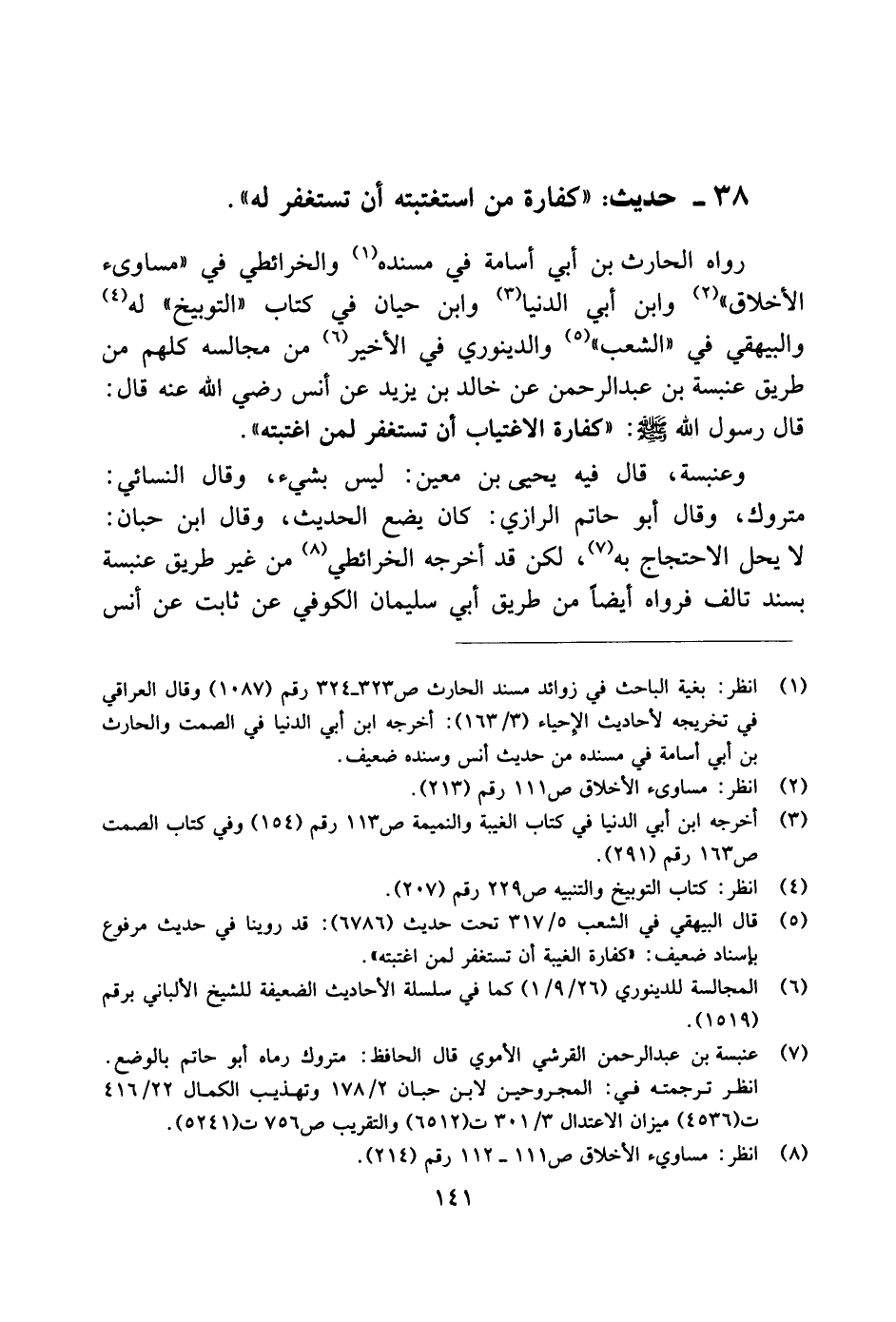 38 - حديث "كفارة من استغتبته أن تستغفر له".