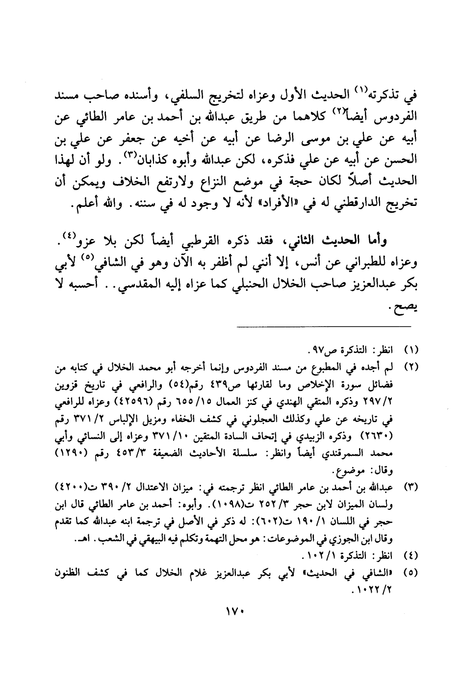 وأما الحديث الثاني، فقد ذكره القرطبي أيضًا لكن بلا عزو. وعزاه للطبراني عن أنس، إلا أنني لم أظفر به الآن وهو في الشافعي لأبي بكر عبد العزيز صاحب الخلال الحنبلي كما عزاه إليه المقدسي .. أحسبه لا يصح.