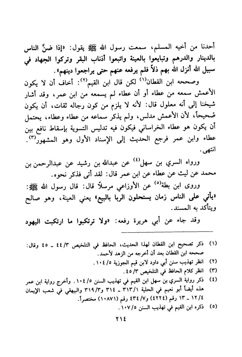 أحدنا من أخيه المسلم، سمعت رسول الله صلى الله عليه وسلم يقول: "إذا ضن الناس بالدينار والدرهم وتبايعوا بالعينة واتبعوا أذناب البقر وتركوا الجهاد في سبيل الله أنزل الله بهم ذلاً فلم يرفعه عنهم حتى يراجعوا دينهم".