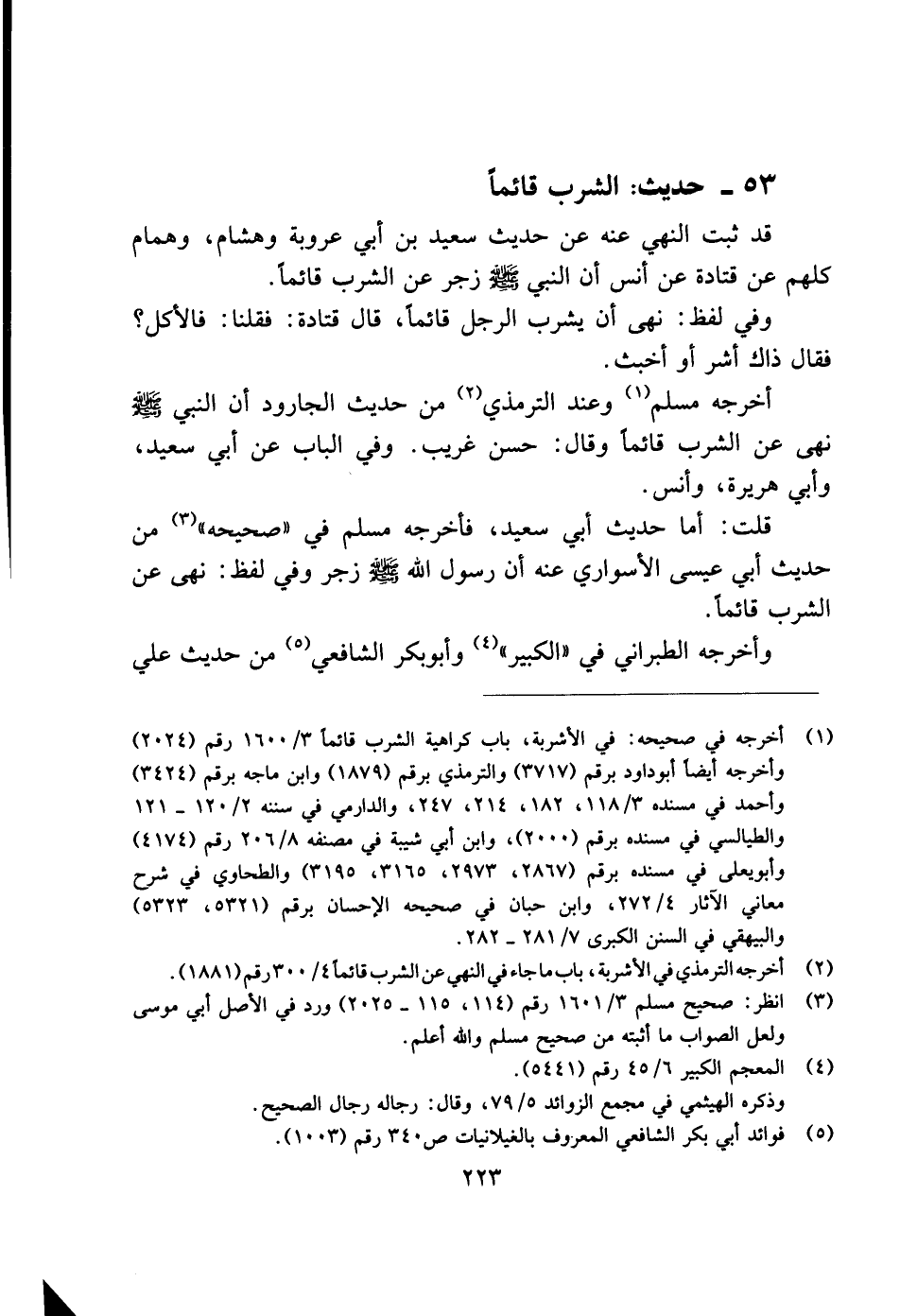 أخرجه مسلم وعند الترمذي من حيدث الجارود أن النبي صلى الله عليه وسلم نهى عن الشرب قائمًا وقال: حسن غريب. وفي الباب عن أبي سعيد، وأبي هريرة، وأنس.
